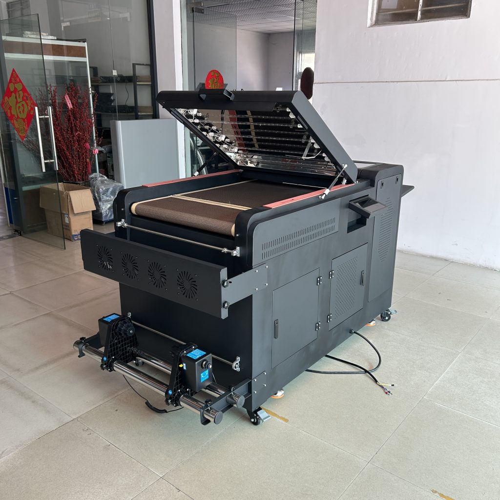 在整个 DTF(Direct To Film)生产工艺中,抖粉机的作用不仅仅是撒粉,而是整个流程中: